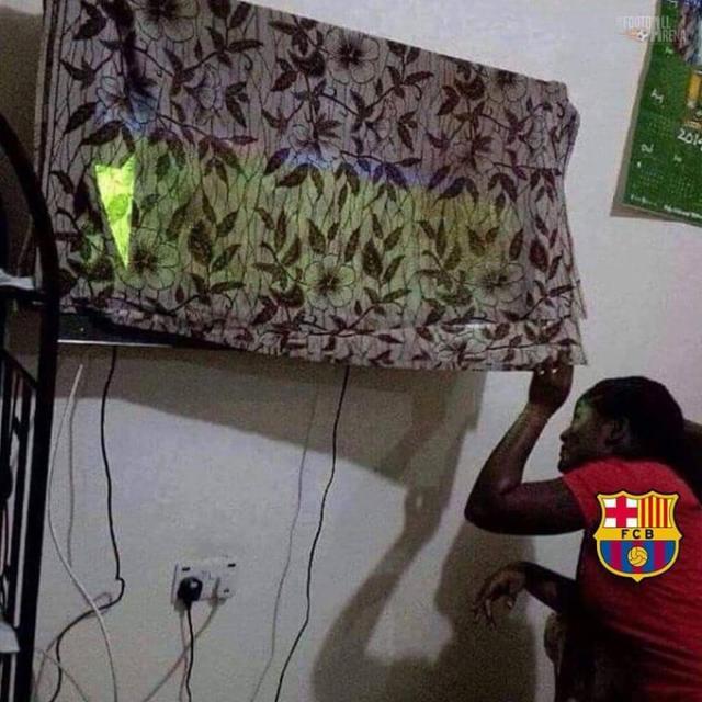 据说巴萨球迷都是这样看比赛↑