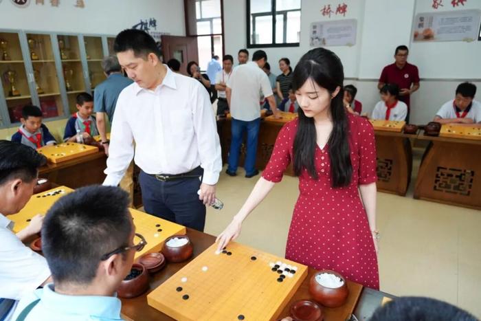 大师赛期间还举行了围棋大师进校园活动。10日上午,中国围棋协会主席常昊、名誉主席华以刚、副秘书长刘菁,上海棋院院长刘世振等围棋大师及棋手俞俐均一同前往育秀中学开展交流活动,通过“车轮战”形式与学生和社区围棋爱好者们进行“指导棋”切磋,为现场观众带来一堂别开生面的围棋公开课。