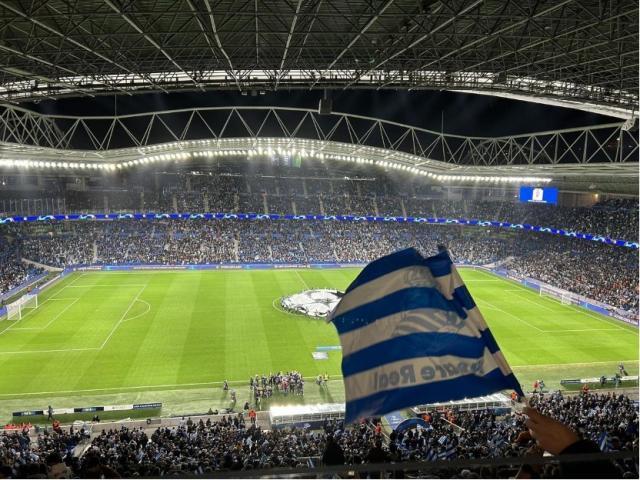 次回合开始前,皇家社会本地拥趸对翻盘已不抱太大希望。笔者在圣塞瓦斯蒂安下榻旅馆,前台接待员问是不是来看比赛的,得到肯定答复后,他说:“今天如果能逆转,那就是皇家社会队史最值得铭记的一天,但逆转不了的话也正常,他们已经做得很好了。”赛前聚在球场外的球迷们也大多持同一观点,他们对本队的欧冠表现已足够满意,“平均10年才能参加一次欧冠,能拿到小组头名,我们已经很满足了!皇家社会毕竟不是皇马和巴萨。”确实,皇家社会上一次出现在欧冠赛场,还是整整十年前的2013-14赛季,那时的主力门将是布拉沃,锋线头牌则是格列兹曼,最终小组垫底出局。十年后,焕然一新的皇社在欧冠小组赛头名出线,足以让拥趸们感到满足。