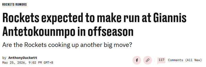 随着球队暴露的问题越来越多,他们也需要制定相应的解决方案。据《体育画报》的克里斯·曼尼克斯报道,火箭队总经理斯通,可能会追求密尔沃基雄鹿超级巨星扬尼斯·阿德托昆博。就目前而言,休斯顿管理层的手中还有筹码。虽然在交易凯文杜兰特时,送出未来多个次轮签和一个2025年的首轮签,但这些资产都是当时交易詹姆斯哈登衍生出的副产物,至于球队自己手中的首轮选秀权,斯通完全具备梭哈字母哥的实力的底气。